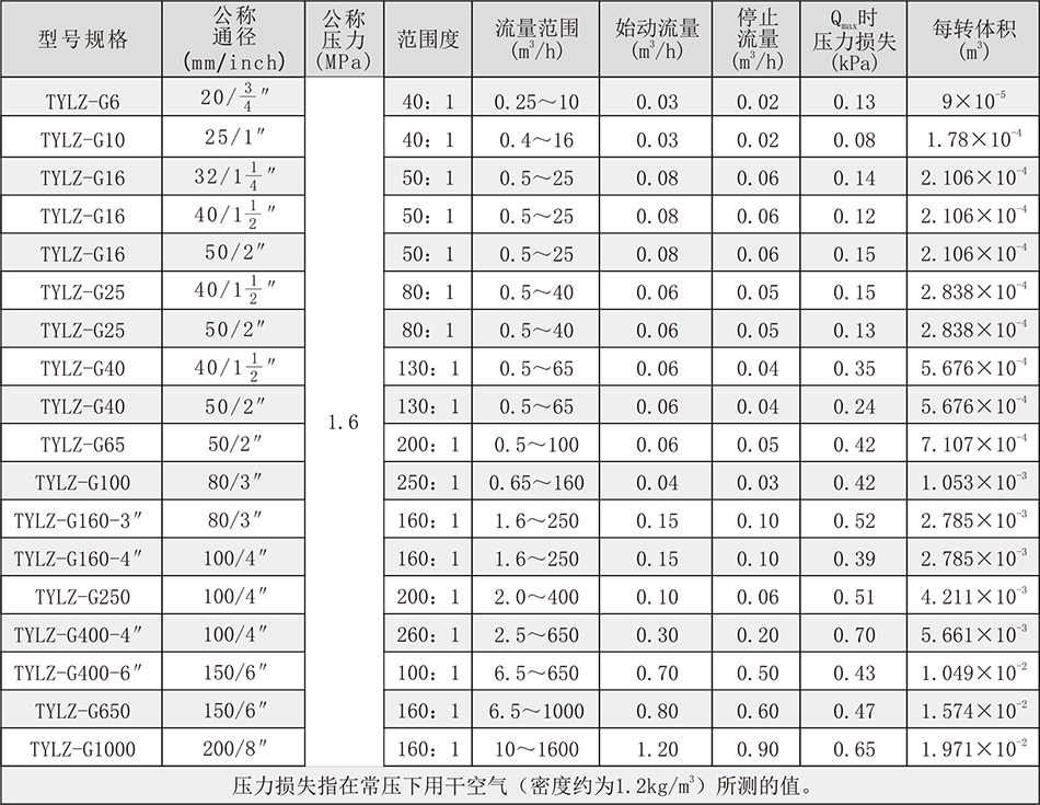 不同规格流量计的压力损失0.08kPa~0.70kPa。